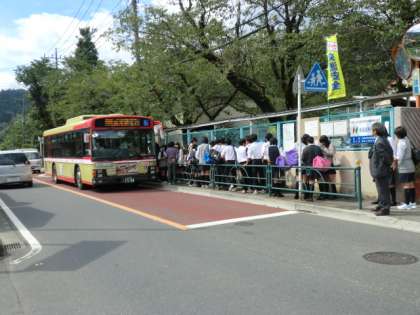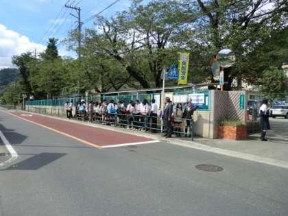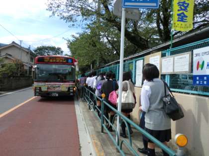 最後に恩中前から、バスで高尾方面に向かう班の出発です。