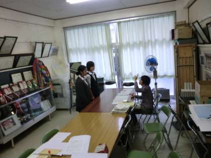 各事業所を訪問し終えた班から帰校し、応接室で報告を行いました。