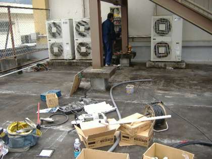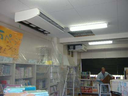 15日(月)から図書室では、エアコンの設置工事が始まりました。