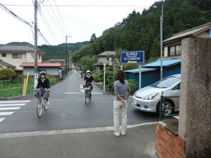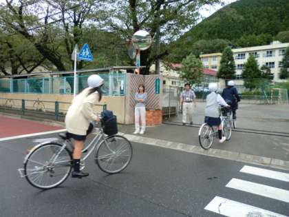 一旦停止してくれる車には、挨拶を返します。