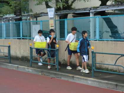 多目的広場で練習していた、ソフトテニス部が戻ってきました。