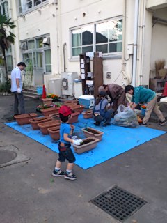 PTAの方々と美化委員会の生徒達で草むしりと花壇整美をしました。