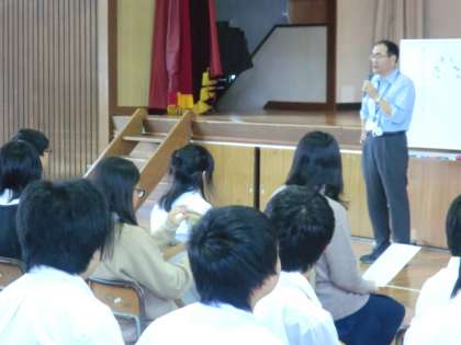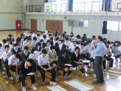 馬場先生の指導で、修学旅行のまとめの相互評価を行いました。