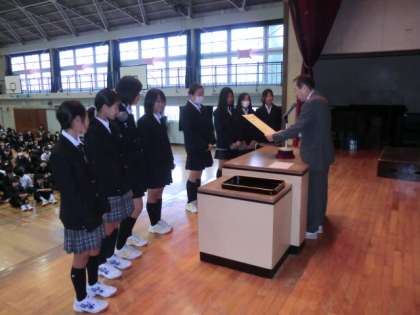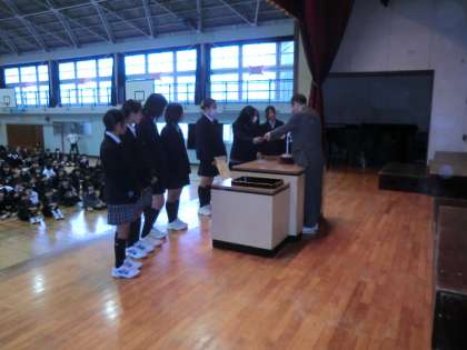 最後にソフトテニス部女子の、新人戦準優勝の表彰です。