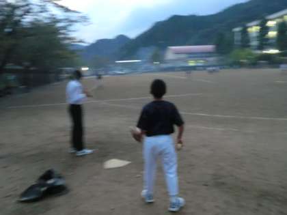 日が落ちて暗くなってくる中での練習です。