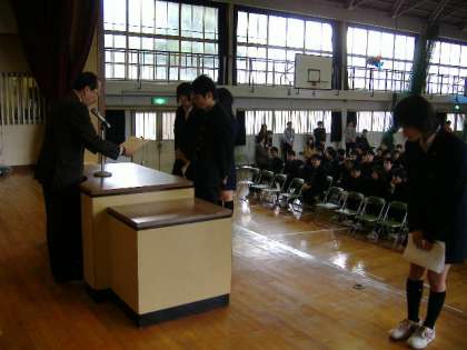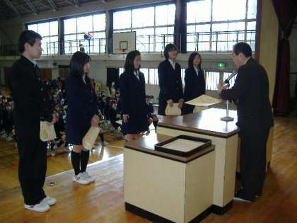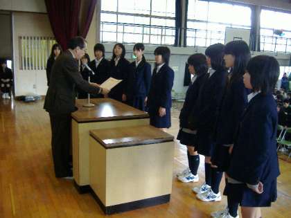 中学校書初め紙上展・社会福祉意見発表会・1年生バスケットボール練習大会の表彰です。