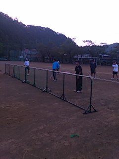 今日は男女団体戦の多摩西大会があります。恒例の朝練習が始まりました。サークルの指導員の方々やOB、OGが練習のお手伝いに駆けつけてくださいました。