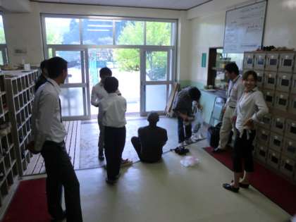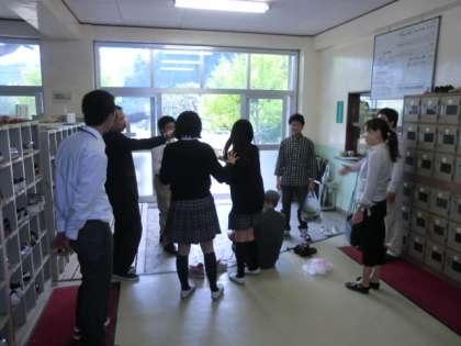 玄関でお別れをする生徒もいました。