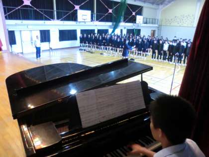 最初に学年合唱を行いました。