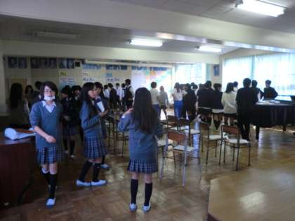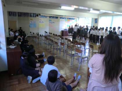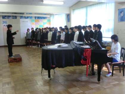 学年を越えてお互いの合唱を聞き合い、自分たちの課題を見つけていました。
