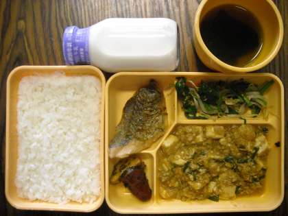 ごはん・マーボー豆腐・炒めナムル・魚の香味焼き・大学芋・わかめスープ