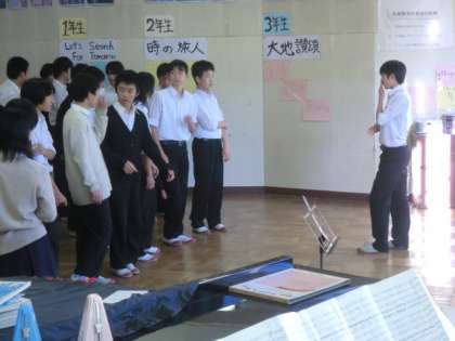 体育館で合唱練習した後、音楽室で修正点を確認しました。