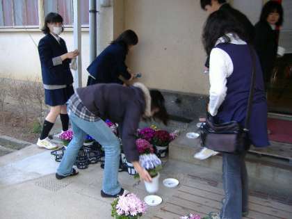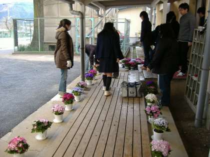 PTAの環境委員さんには、装飾用の鉢植えを搬入していただきました。