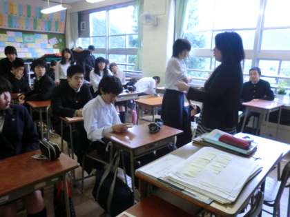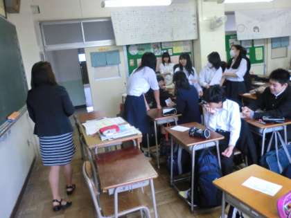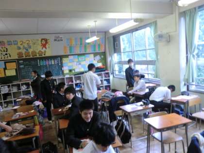 貧血検査が終わって、生徒が戻ってきたところでした。