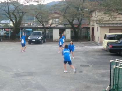 外の空いたスペースを使っての練習です。