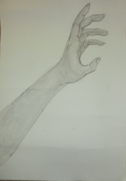 自分の手を鉛筆で描きました。