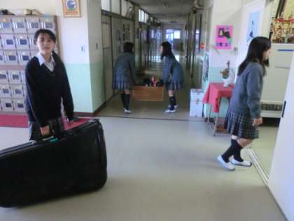 昨日恩方市民センターで使用した楽器を、応接室から音楽室まで運搬しました。