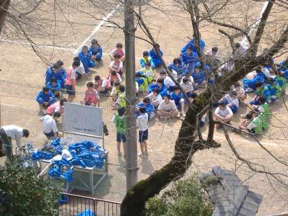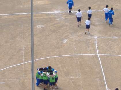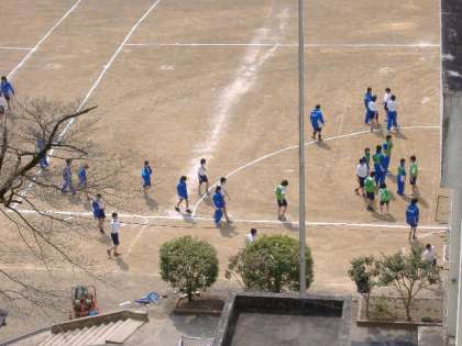 校庭では男子がサッカーを、体育館では女子がドッジボールを行いました。