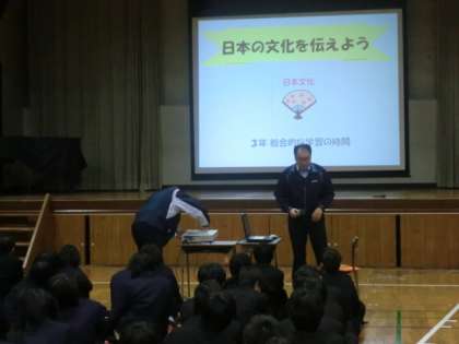 アフリカのウガンダ共和国へ、日本の文化を紹介する取り組みについて、担当の馬場先生から説明がありました。