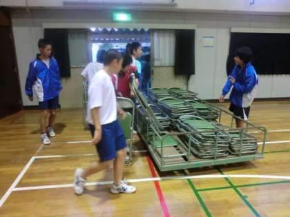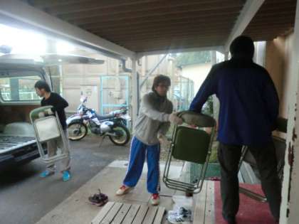 恩方育成園では10日(土)に秋まつりが実施されます。そこで使用するためのパイプ椅子などの搬出が4時から行われました。