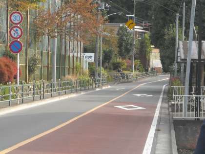 徒歩の生徒は陣馬街道を直進して皎月院側から入ってくる者も多いです。