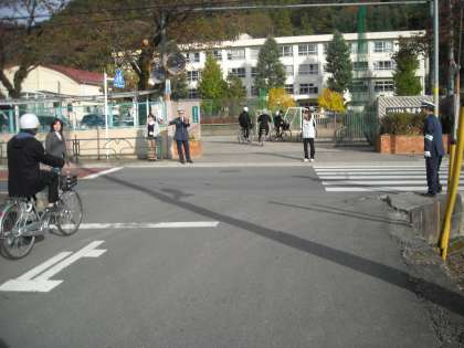 応援の樋口先生と謎の人物も一緒に挨拶の声掛けをしています。