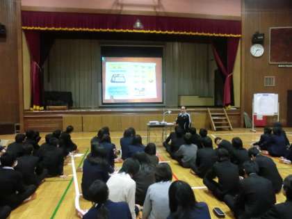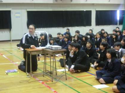 6時間目に体育館で、学年全体での学習を行いました。
