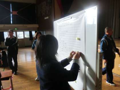 テーマが決まった班から、自分たちの班の付箋を一覧表に貼り付けました。