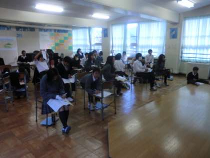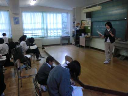 奥山先生の指導で、歌詞の読み取りを行っていました。