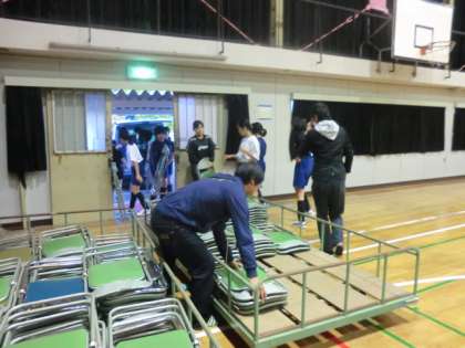 10日の土曜日に行われた「秋まつり」のために貸し出していたパイプ椅子が体育館に戻されました。