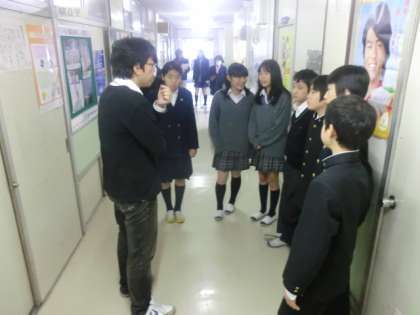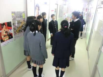 昼休みに試験一週間前の活動について職員室前で打ち合わせていました。