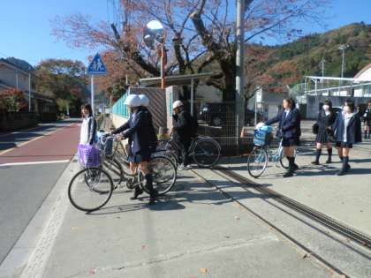 陣馬街道は、一時停止をして横断します。