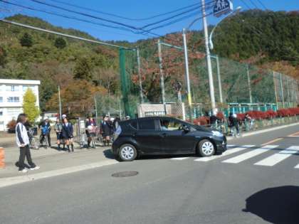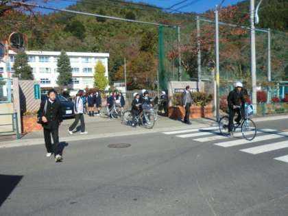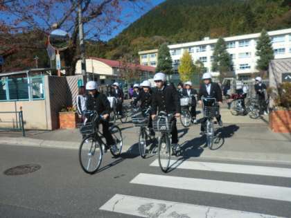 橋本先生が、自転車の安全指導に出発しました。