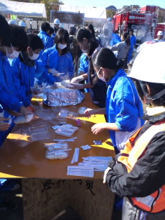 アルファー米の炊き出しで食事の準備をすることも大切な役割です。