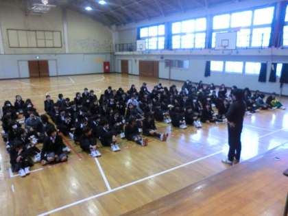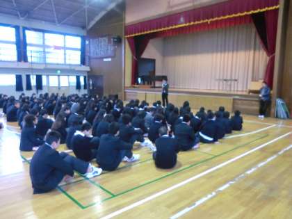 4時間目に体育館で、29日(木)にオリンパスホール八王子で行われる音楽鑑賞教室のための事前指導を行いました。