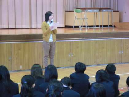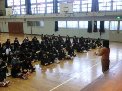 鶴田先生の諸注意の後、音楽科の奥山先生から音楽鑑賞についての説明がありました。