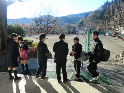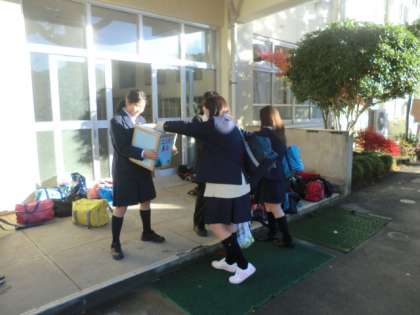 生徒会の役員が、毎朝玄関前で募金の呼びかけをしています。