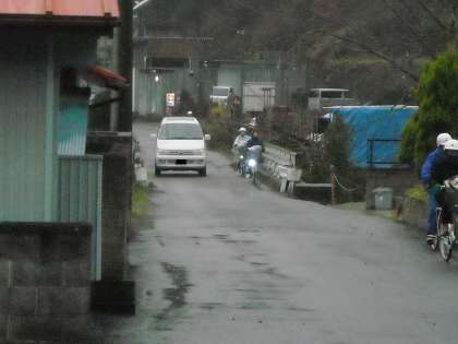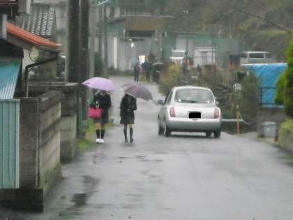 正門前の狭い通りは意外と交通量が多くて危険です。