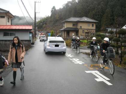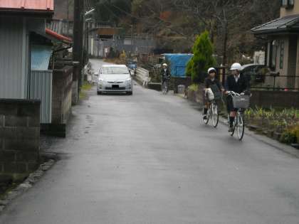 正門前の狭い道も交通量は多いです。3台続けて入ってきました。