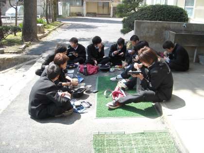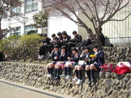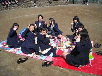 好きな場所で仲の良い友達と自由に食べられるので、校庭の真ん中や昇降口前で食べている生徒も居ます。