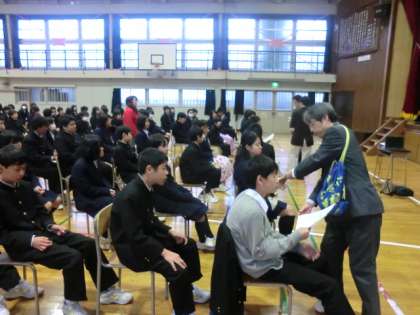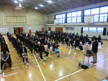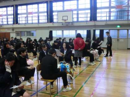 1時間目に体育館で行われました。