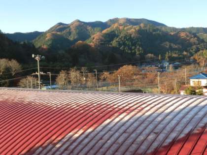 体育館の屋根の霜は、太陽が昇ると見る間に消えていきます。