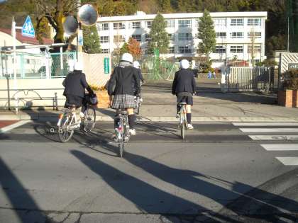 水曜日は学区内、自転車指導の日で、先生方は直接、または学校から各所に向かいました。