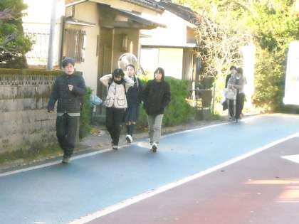1時間に1本のバスで出勤・登校する教職員・生徒もやってきました。