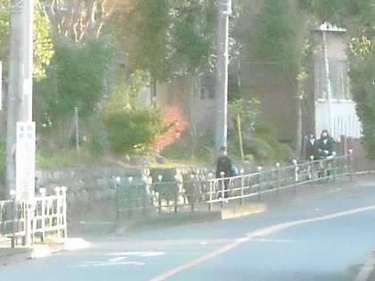 徒歩の生徒は陣馬街道を直進して来る者も多いです。