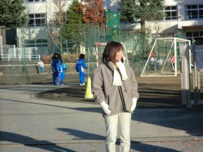 今日は、樋口先生と東郷先生と奥山先生の女性トリオが校門に立ちました。