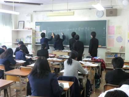 清水先生が板書した後、生徒が問題を解き始めました。