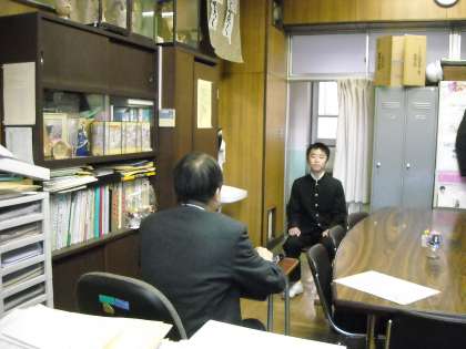 3年生の面接練習は続いています。みんな緊張して面接に臨んでいますが、とても立派な態度です。