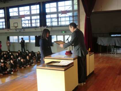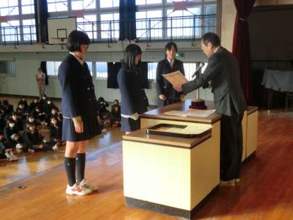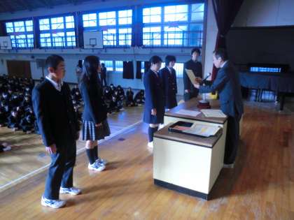 税の作文コンクール入賞、炎天寺一茶まつり俳句の入賞、中P連科学コンクール入賞の表彰です。