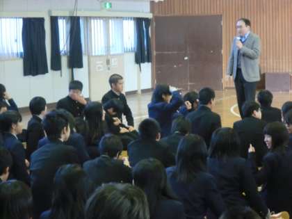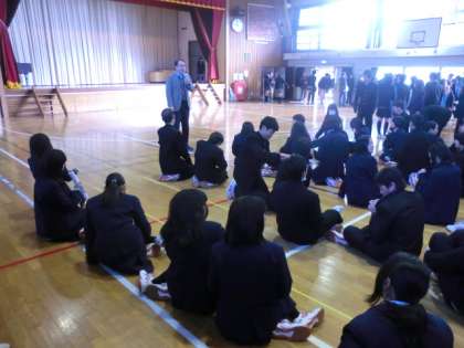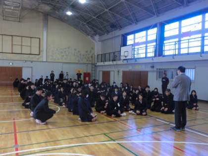 はじめに体育館で馬場先生から、身だしなみの全体指導がありました。